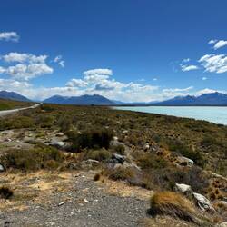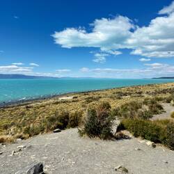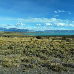 Heute morgen fuhren wir nach dem Frühstück um 8:30 Uhr erst mal 80km entlang dem Lago Argentino durch die patagonische Steppe zum Nationalpark.