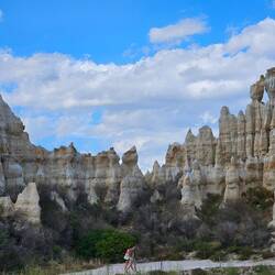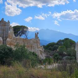 Man fährt nichts ahnend einige Bergstrecken, teils sehr schmal, und dann sieht man von weitem eine kuriose Felsformation. Genau da wollen wir hin. Also parken wir unser Auto (Parkplatz ist gratis),Leggi altro