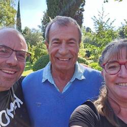 Sehr schweren Herzens haben wir uns heute von Jean-Paul verabschiedet. Gestern Abend hatte er uns angeboten, ein Glas Wein zusammen zu trinken. Und so saßen wir dann um 19:30 draußen mit Jean-Paul, seiner Cousine Simone (91), Gast Nora und Jean-Jacques (einem Freund von ihm; fährt eine alte Ente) draußen und haben Wein getrunken. Na ja, Thomas, Nora und Jean-Jacques haben Weisswein getrunken. Simone, Jean-Paul und ich haben Champagner getrunken. Und der Champagner war wirklich lecker! Als dann beide Flaschen leer waren und auch die Knabbereien (Chips, Nüsse, Schinken weggefuttert waren) hat Jean-Jacques noch 2 Pizzen geordert und abgeholt - mit Anchovis! DAS war für mich die totale Herausforderung!!!! Und was soll ich sagen - ich habe es probiert aber es schmeckt immer noch nicht! Dafür gab es danach noch zwei Grappa-Runden. Jedenfalls war es ein sehr netter, lustiger Abend!