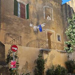 Völlig klar - es hat ein paar Häuser, die vor 1960 gebaut sind und ein paar schmale Gassen. Das war es aber auch - fast! Eine Gasse hat man nett mit Blättern über der Gasse dekoriert (oder sind das Feenflügel, die man einigen Feen ausgerupft hat?). Es eine Kirche, die - wundert sich noch jemand? - an der Außenfassade restauriert wird 😉Baca lagi