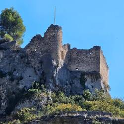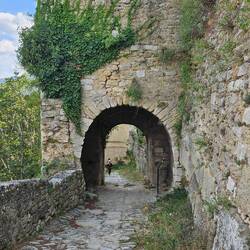 Die Burg (eigentlich Burg-Ruine) sieht recht imposant aus. Leider ist weder der Burgfried noch die Kapelle zu besichtigen. Aber man kann rund auf der noch vorhandenen Mauer laufen und hat einen guten Blick in die Umgebung und auf den Ort.