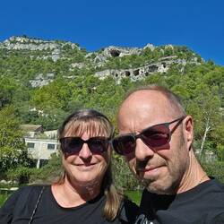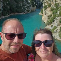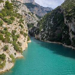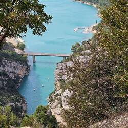 Thomas wollte uns noch was malerisches erleben lassen und hat eine Route zu einer Kaskade rausgesucht. Die Kaskade war nicht zu sehen weil gerade trocken aber unbeabsichtigt hatte Thomas uns zum Sainte-Croix-See und der beginnenden Verdon-Schlucht geführt. Die gesamte Schlucht steht erst morgen auf dem Plan aber das, was wir heute bereits gesehen haben, ist seeeeehr schön! Das Wasser des Sees und des Verdon ist türkis wie in der Karibik.Baca lagi