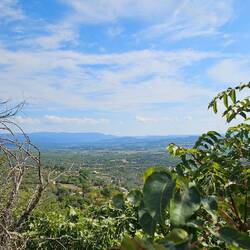 Der Weg führt immer weiter durch den Wald. Zwar sind Stufen in Form von Holzbalken angelegt, aber diese sind manchmal gerade mal 15 cm hoch, mal 30 cm. Also nicht immer einfach bergauf oder bergab zu gehen. Es gibt eine kleine Runde (angegeben mit 35 Minunten) und eine große Runde (angegeben mit 50 Minuten). Nach dem 1. Haltepunkt muss man sich entscheiden und selbstverständlich nehmen wir die große Runde.