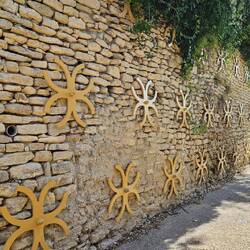 Gordes ist ebenfalls eines der schönsten Dörfer Frankreichs. Und zugegeben, es ist tatsächlich schön. Wie so häufig: alte Häuschen, schmale, alte Gässchen und Kopfsteinpflaster (super, wenn es bergauf/bergab geht.....). Aber es ist bisher auch das teuerste aller gesehenen Dörfer. Beim Parken muss man die Mindestzeit von 4 Stunden nehmen und die kosten 8 Euro. Der Kaffee kostete 3,50 Euro. Und es gibt viele Touristen, die hier herkommen.Baca lagi