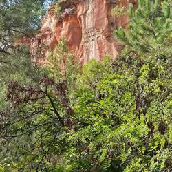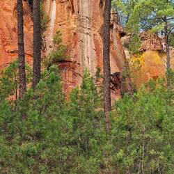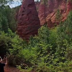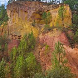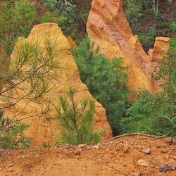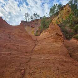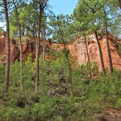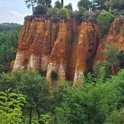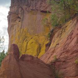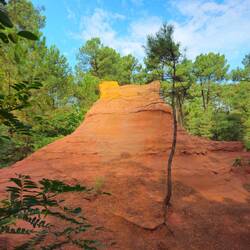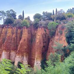 Wir fahren nach Roussillion zu den Ockerfelsen. Der Parkplatz ist heute gratis (sonst 4 Euro für den ganzen Tag) und gerade mal 50 Meter vom Eingang zum Rundgang entfernt. Der Eintritt ist auch dort heute frei (sonst 3,50 Euro pro Person). Beides sehr günstige Tarife wenn ich da gestern an Gordes denke..... Und hier würde ich freiwillig tatsächlich viel mehr zahlen!!!!