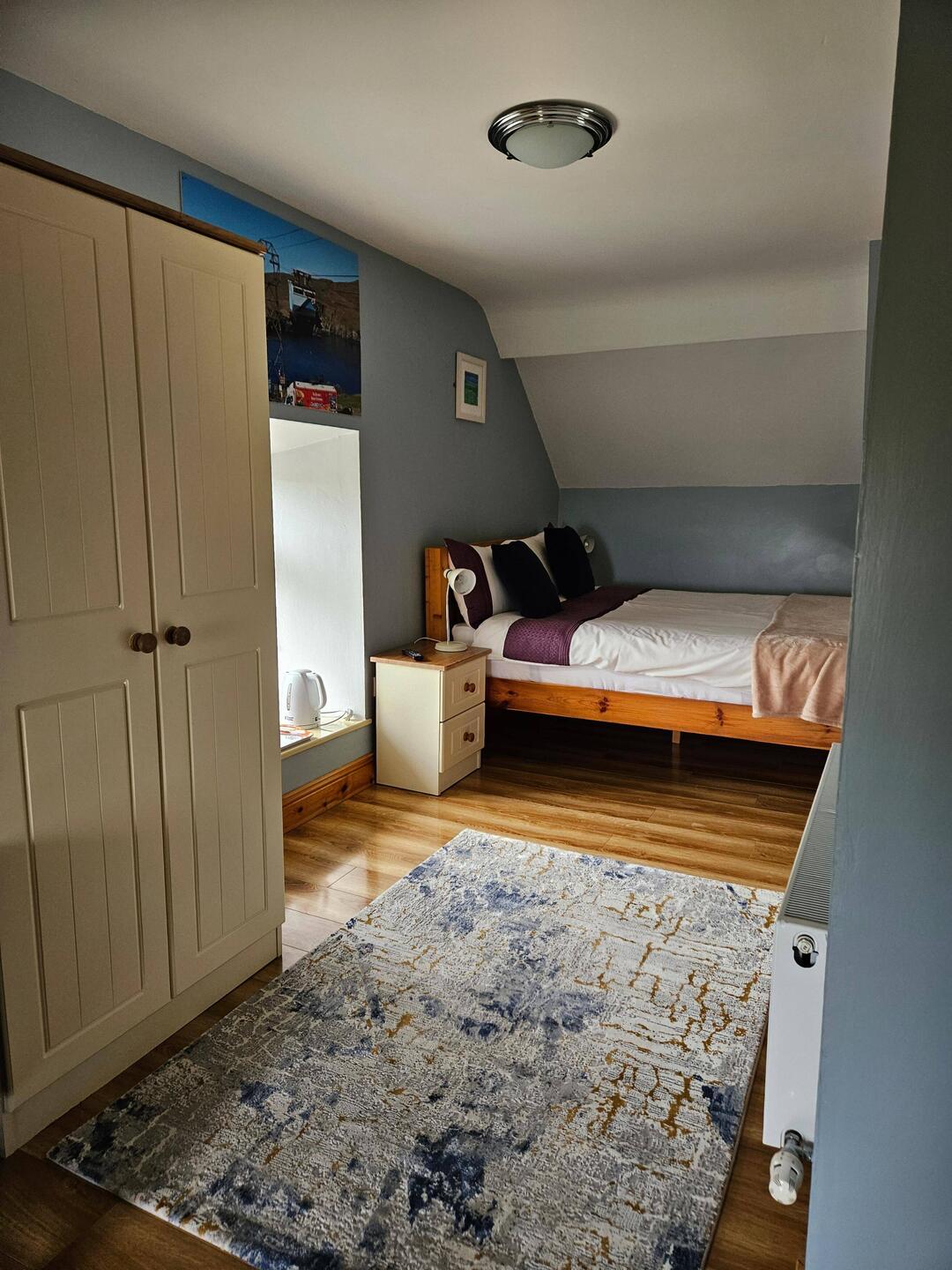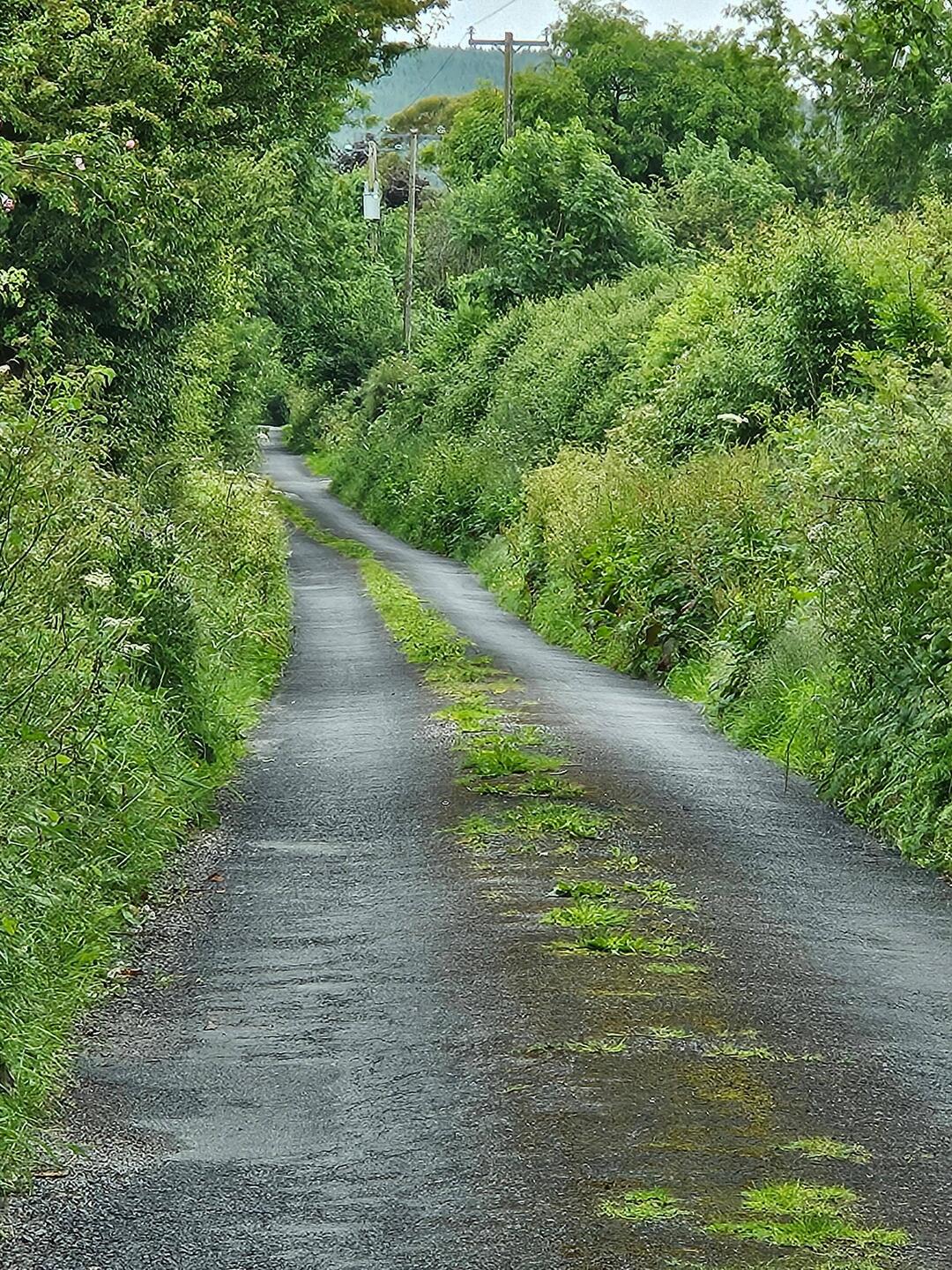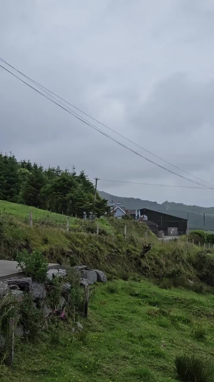 Um zu unserer Unterkunft zu kommen, fahren wir die hübschen, irischen Nebenstraßen zwischen grün und grün entlang. Die letzte Straße ist eine 5-stellige L-Straße, 1 1/2 Autos breit aber Czytaj więcej