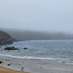 Der Irish Mist wird leider nicht besser sondern macht die Fahrt teilweise nervig, weil es ziemlich neblig aussieht. Trotzdem wagen wir die Fahrt nach Robert's Cove. Natürlich ist der Ausblick nur Czytaj więcej