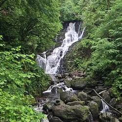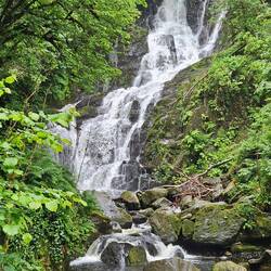 Der Torc-Wasserfall liegt im Killarney-Nationalpark und da wir dort quasi sowieso auf unserer Tour vorbeikommen, halten wir hier natürlich.