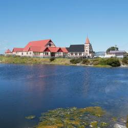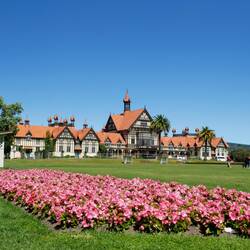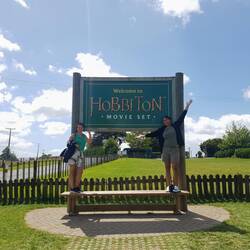 After a couple of hours drive south we dropped in at Hobbiton, I didn't do the tour but we still saw the fields which look like the Shire and had a photo by the sign. The farmer who owns this land negotiated with the film company to build Hobbiton after tourists kept "discovering" location after the Lord of the Ring films and visited anyway. We explored Rotorua for the afternoon which is quaint and full of natural geothermal ponds and bubbling mud.Læs mere