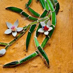 The sun picks up all the jewel colors of the broken China used to mosaic the exteriors. It's eye-catching. I'm curious if China is purchased and broken on purpose, or created first then broken. But I don't think our guide understands my question.