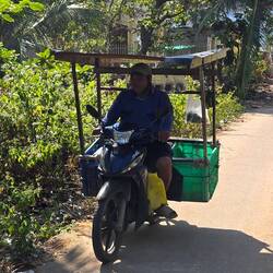 Our guide Tran is informative and entertaining as he shows us all the plants on the farm. The pepper grows on trees that are limited to 3 meters in height, to increase production. You can eat the little green berries fresh....they are EXTREMELY peppery 😂.
