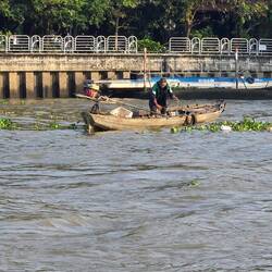 A short walk to the wharf is serenaded by twittering birds, and the universal sounds of a city waking up. I love early mornings, seeing real locals go about their business, the calmness. Steady whisking sounds as storefronts are swept clean, and bahn mi carts begin rolling through the streets. Soft music accompanies a group of white clad people as they glide in tandem through a series of rhythmic movements in the riverside park beside the wharf.