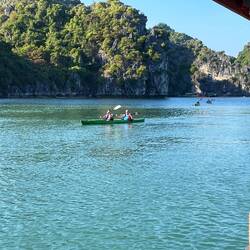 Um 9 Uhr gings los mit der 2.5-stündigen Fahrt über die Autobahn nach Halong Beach. Hier boardeten wir ein auf das Übernachtungsschiff, welches uns zu unserem Ankerpunkt in der Halong-BuchtRead more