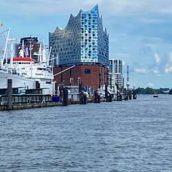 Cranes, liners, cargo ships of all shapes and sizes, ferries, tugs, dry-docks, historic vessels (lightship, icebreaker, a Russian Tango Class submarine, U-434, now a museum: the Port of Hamburg has them all. And always, on the horizon, is the Elbphilharmonie, towering over the waves like a sailing ship under full canvas.