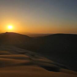 Die Stimmung war jedoch den ganzen Tag über eher gedrückt und als am Abend noch aus einer kleinen Unaufmerksamkeit meine Kreditkarte im Bankautomaten stecken blieb, war der Tag sowieso abgestempelt. Den nächsten Tag habe ich mit vielen Schritten in der prallen Sonne begonnen, da ich Bewegung brauchte. Für mehr war jedoch das Wetter auch viel zu warm und ich hab mich mach dem Frühstück an die Oase gelegt, wo auch Max dazukam. Die gedrückte Stimmung von gestern hatte immer noch Überhand, es war relativ schwierig, ein Gespräch zu beginnen und die Situation etwas aufzulockern. Die Stimmung von Max hat stark auf mich abgefärbt. Für am Nachmittag haben wir um 4 Uhr die Buggy Tour mit Sandboarding gebucht und die war absolut der Hammer: genau, was Max und ich gerade gebraucht hatten. Wir haben beide überhaupt nicht damit gerechnet, dass der Fahrer nachdem er in die Wüsste rausgefahren ist, erstmals den Stempel runterdrückt und mit Vollgas auf die Dünen zusteuert. War das eine Achterbahnfahrt! Das Sandboarden zwischen den verrückten Fahrten war zudem gar nichtmal so einfach - immer wieder bin ich stecken geblieben, da der Sand klar bei weitem nicht so geschmeidig ist wie Schnee. Jedenfalls alles in allem ein totaler Erfolg und hat sich total gelohnt.