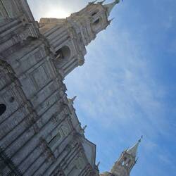Ich habe mir einen Sitz im Übernacht-Bus von Ica nach Arequipa gebucht, damit ich anschliessend am Montagmorgen da bin. Den Reisekomfort, den ich geniessen konnte, machte demjenigen der Business-Class im Flieger grosse Konkurrenz. Aus dem Schlaf erwacht, hatte ich erstmal einen wunderschönen Ausblick auf den Sonnenaufgang, welcher sich über die weite Landschaft hin erschliesst und die Nacht zum Tage machte. In Arequipa angekommen, hab ich mein Gepäck ins Hostel gebracht und ging erstmals frühstücken und die Gegend erkunden. Egal in welche Strasse ich eingebigen bin, in der weiten Ferne habe ich immer entweder unendliche Weiten, Berge oder sogar einen Vulkan gesehen. Die Landschanft um Arequipa herum hat mich bereits nach den ersten Schritten in dieser Stadt begeistert und die Begeisterung wurde immer grösser, je mehr ich gesehen habe. Obwohl es eine Stadt war, habe ich ebenfalls von den Locals unendlich viel Freundlichkeit gezeigt bekommen, sei es in einem kurzen Gespräch oder einfach nur, dass ich in Arequipa willkommen geheissen wurde. Herzerwärmend.