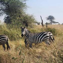 Long game drive today through the Serengeti. Saw everything-lions eating a zebra, leopards in the trees, cheetahs chasing birds and of course elephants and zebras. Picnic lunch was nice. Amazed thereLeggi altro