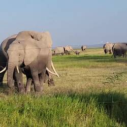 Amboseli National Park with a view of Kilamanjero. Went on 2 game drives and saw elephants, elephants, elephants plus a couple hippos. Drove and took a short walk to the Observation Hill and hadLeggi altro