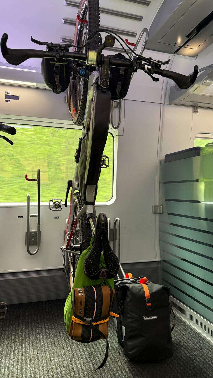 Long train ride from Lake Ammersee over Munich /, Berlin / Hamburg to the North of Denmark. Find a nice campsite in the woods - arrived at Midnight