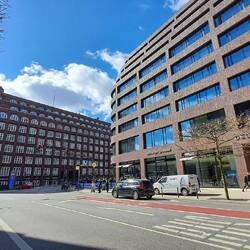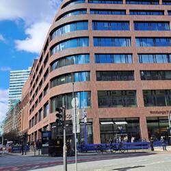 Der Abriss wurde 2019 durchgeführt, Grundsteinlegung für den Neubau war im Oktober 2020. Für die Projektentwicklung ist die ABG Real Estate Group verantwortlich. Der Entwurf für den Neubau stammt von Hadi Teherani Architects. Die Fertigstellung erfolgte 2024. Eine Besonderheit ist eine ca. 1200 Quadratmeter große Palmenhalle unter einer knapp 40 Meter hohen Dachkuppel im Innenhof.[2] Hauptmieter des Gebäudes ist die Hamburger Sparkasse, die das Gebäude als Zentrale nutzt und hier rund 1700 Mitarbeitende konzentriert. In dem Gebäude gibt es außerdem 30 Wohnungen sowie Restaurant- und Geschäftsflächen.Læs mere