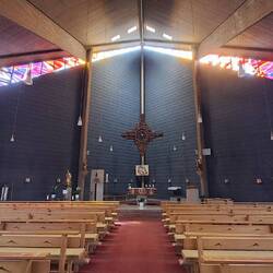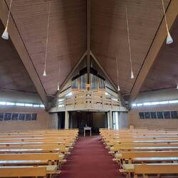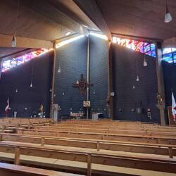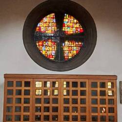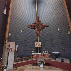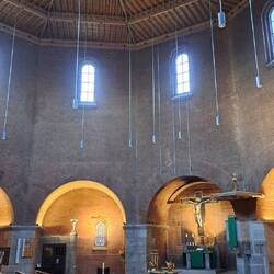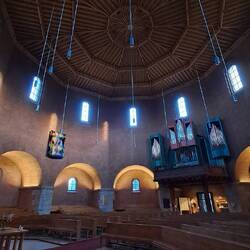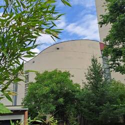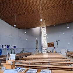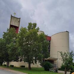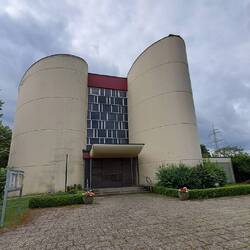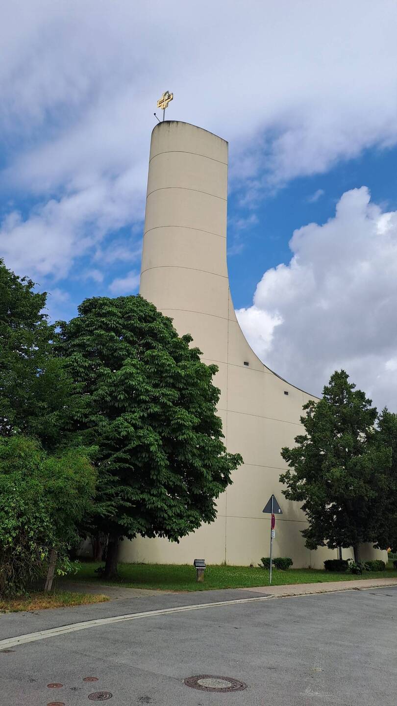 Elliptische Betonkirche in Anlehnung an ein Schiff