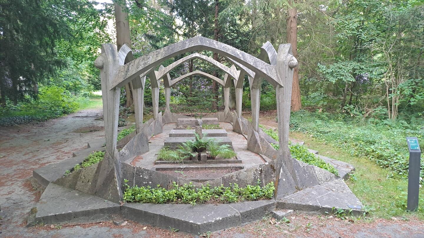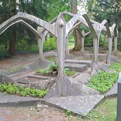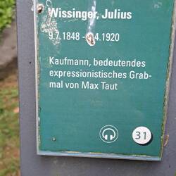 Das Grabmal Wissinger wurde 1922/23 nach dem Entwurf des Architekten Max Taut als expressionistische Raumstruktur aus Beton über der Grabstätte errichtet.Leggi altro