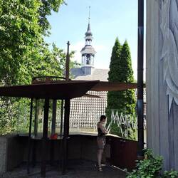 Karl Kühn entwarf die Kirche zwischen 1913 und 1918. Sie wurde im 2.Weltkrieg zerstört.