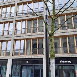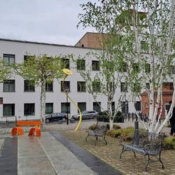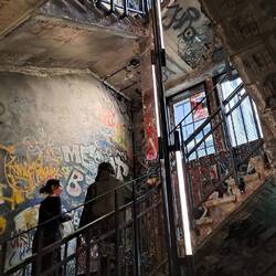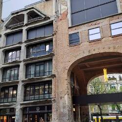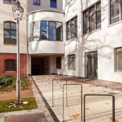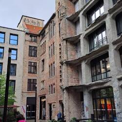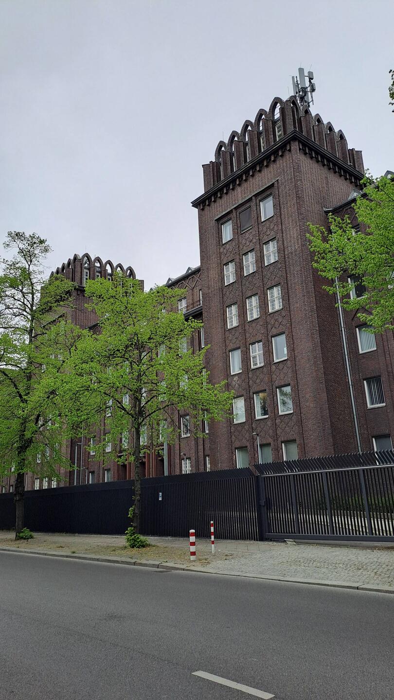 Neben dem Gewerbehof, auf dem Grundstück Ringbahnstraße 10/14, macht ein viergeschossiger Backsteinbau mit einer hohen, ornamentierten Attika auf sich aufmerksam. DasLeggi altro