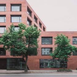 Fabrikgebäude der Parfümeriefabrik Scherk (heute Institut für pharmazeutische Technologie der FU Berlin) Nur 1. Bauabschnitt ausgeführt, stark verändert