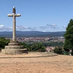 Later, we came to a cross on the crest of the hill overlooking the city of Astorga. It was a long steep down grade, but I’m getting pretty good at protecting my knee going down hills.