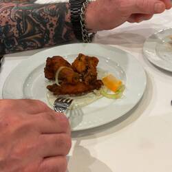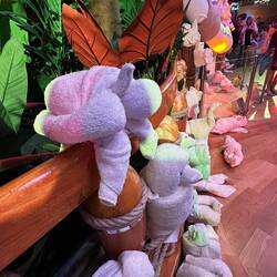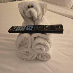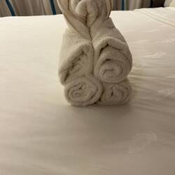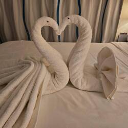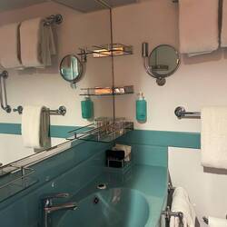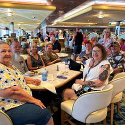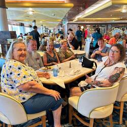 We are onboard and departure is scheduled soon. We all met for lunch at the Buffett Buffet. In the rooms, waiting for luggage and embankment.