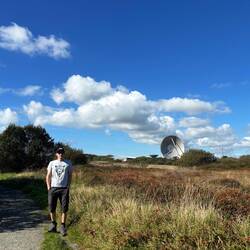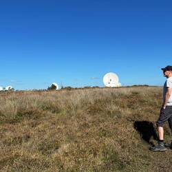 Interesting area of satellite dishes and standing stones and glimpses of the sea in the distance