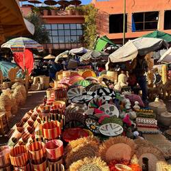 1/2 Déambulations à la découverte des bruits, des odeurs et des saveurs locales. Achats de billets de bus pour demain -> Essouira, Inchallah