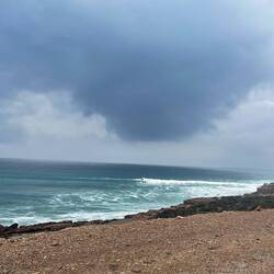 De la piste qui longe l’océan. 34 degrés, c est chaud! Heureusement ça ne dure pas et la température redescend, ouf!