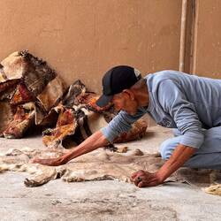 Sont tannées des peaux de chèvres et de moutons principalement mais aussi parfois de dromadaires.Read more