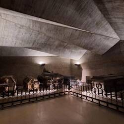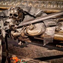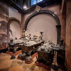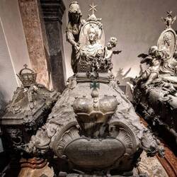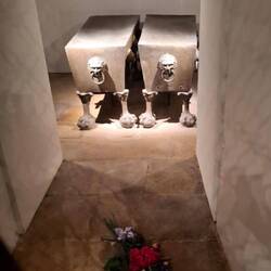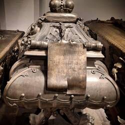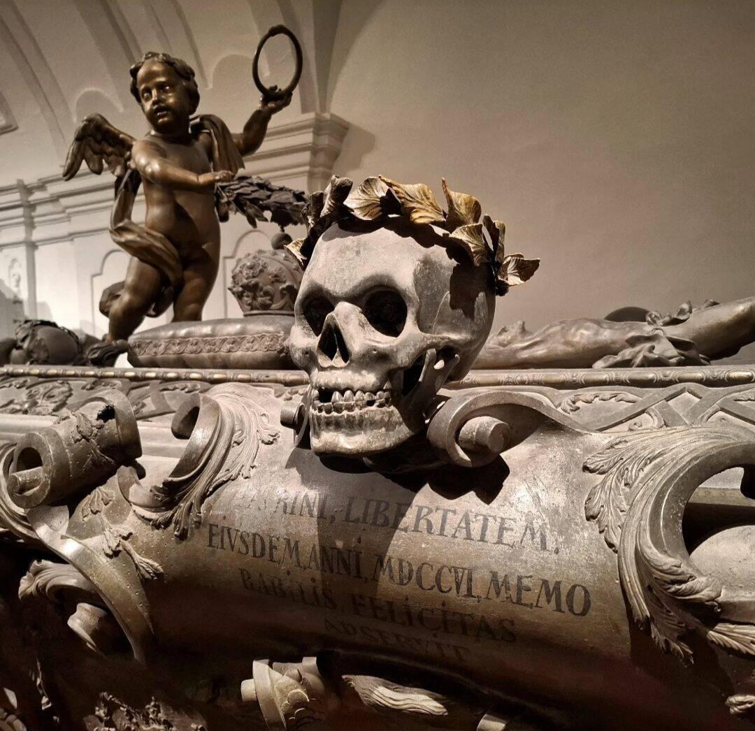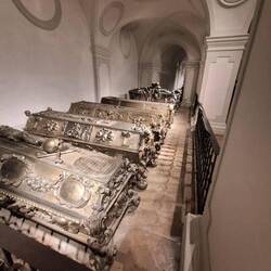 Hier in der Kapuziner Kruft liegt Sissi und Frank und die ganzen Habsburger. Der letze Sarg ist von 2023