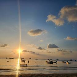 'S ochtends vertrokken uit Koh Phangang op weg naar Ko Tao. Zoals je ziet: aangekomen in de regen en bewolking. Ik was erg moe deze dag, geen idee waarvan. Dus nadat ik 2 Mojito's op het strand had gedronken, voelde het alsof ik 6 flessen wodka achterover had getikt haha. Waarschijnlijk ook weer een combinatie van niets eten en alcohol. Maar tijdens het vele reizen is eten gewoon lastig. Want op een boot kun je meestal alleen chips of chocolade kopen. Als je een busje neemt weet je nooit of ze stoppen. En inkopen bij de supermarkt heeft ook weinig zin. Alles wat koel gehouden moet worden kun je niet meenemen en verder is het veelal koek, snoep, chocolade in de supermarkt. Wellicht ben ik ook wel te verwend haha.