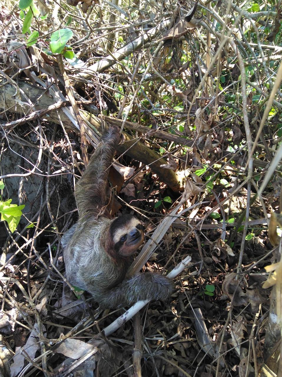Faultier Nummer 1 hat gemütlich eine zweispurige Straße überquert.