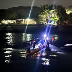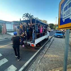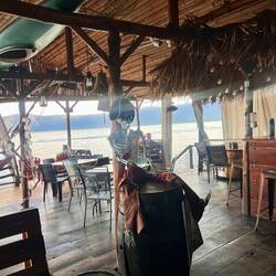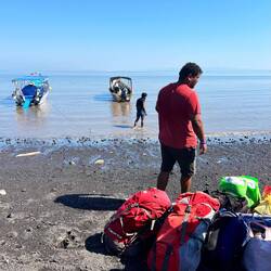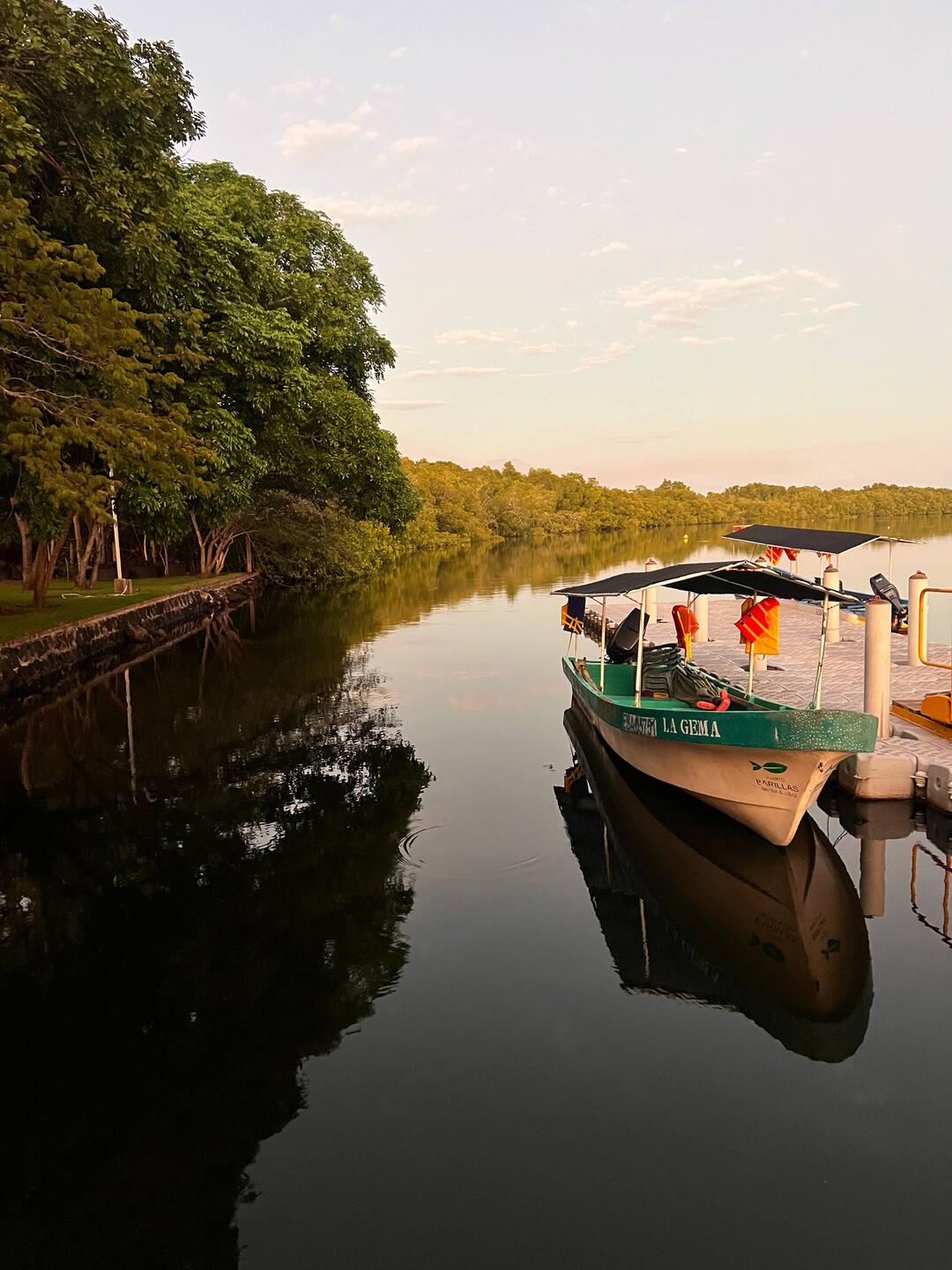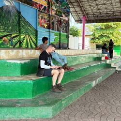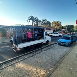 Pēc brīža pārsēžamies jau ierasti cienījama vecuma busā, un tas bez starpgadījumiem mūs nogādā Puerto el Triunfo ostā. Tālāk veicam “tumšo kaulēšanos” ar laivinieku, lai tiktu līdz savai šīvakara apmetnei. Kaulēšanos saucu par tumšu, jo nav ne jausmas, cik būtu normāla cena. Laivinieks saka savu cenu, es prasu veikala pārdevējai, vai tas ir ok, viņa, protams piekrīt laiviniekam. Beigās Zandiņai Perplexity AI apstiprina, ka 30 dolāri no cilvēka ir ok, un mēs salīgstam par 90.