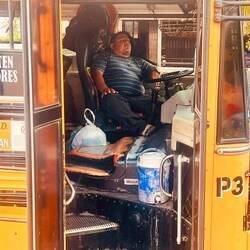 12.49 ierodamies autobusa starta vietā, konduktors mūs ātri ierauj iekšā, un 12.51 buss jau sāk ceļu, jo ir gana pilns. No tā varam mācīties, ka novirzes no punktualitātes šeit iespējamas uz abām pusēm. Ceļš uz okeāna piekrastes ciematiņu El Transito izstiepjas divarpus stundu garumā, jo dzeltenais autobuss, kas noteikti gados vecāks par mani (sk. video), veic pasta un citas sociālās funkcijas – tiek nodotas un pieņemtas paciņas un realizēti naudas pārvedumi vārda vistiešākajā nozīmē.