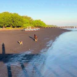 Rīts izrādās ļoti kluss, jo visi pēc ballītes guļ, tikai pludmalē, cūku mielošanās vietā brokastis ietur zirgi. Izstaigājam pludmali un domājam, ka jāsāk interesēties par programmas galveno daļu – došanos ar laivu pāri Fonsekas līcim uz Salvadoru. Vispirms pajautāju zvejniekiem, kas grozās ap savu laivu. Tie izskatās nepārliecinoši, bet par 450 dolāriem sola pārvest pāri. Baidos, ka tas būtu nelegāli, un mēs tiktu arestēti, tāpēc atsaku. Arī cena nešķiet samērīga.