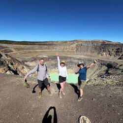 No rīta toties esam pirmajā grupā, kas kāpj augšup. Paldies Dievam, lai mēs ar Zandiņu atkal nebūtu pilnīgi dinozauri, grupai pievienojas divi ķīniešu izcelsmes amerikāņi vecumā virs sešdesmit. Tas arī nosaka kustības tempu, un mūsu klusās bažas par pārlieku noguršanu tiek ātri slāpētas – kāpjam augšup pastaigas tempā, un pēc pāris stundām sasniedzam Santa Anas vulkāna krāteri. Pēdējais izvirdums šeit bijis 2005. gadā, tāpēc krātera malas izskatās ļoti svaigas, atsedzot dažādus minerālus visdažādākajās krāsās, bet pašā krātera vidū ir zaļa sērūdens lagūna. Skats tiešām unikāls.
