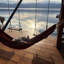 Tālākais šodienas piedzīvojums veidojas visai garlaicīgs un nomokošs, jo internets kalna pakājē nestrādā, līdz ar to neko nevar paveikt dienas turpināšanai. Sanāk pa vecai modei lūgt vienu vietējo zinātāju piezvanīt taksim, lai aizved mūs uz kādu apmetnes vietu tuvējā Koatepeka vulkāniskā ezera krastā. Visa šī procedūra aizņem kādas četras stundas, līdz nonākam hostelī Captain Morgan, kas stāv uz pāļiem virs ezera ūdens. Kā jau esam pieraduši šajā braucienā – nav super komforts, toties ir interesanti. Nelaime tik, ka tualete tālu no istabiņas, bet gan jau kaut kā…