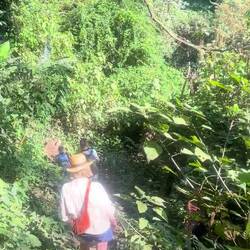 Diena sākas ļoti jauki – ar pankūkām un garšīgo Huajuas kafiju, arī mūsu pārgājiena pavadonis Eri ir laicīgi klāt, un varam doties pastaigā uz ūdenskritumiem. Eri mums sola četru stundu laikā parādīt 10 ūdenskritumus, līdz pirmajam esot jāiet 40 minūtes. Pastaigas sākums ir ļoti mierīgs – Eri mums pa ceļam izrāda dažādas takas malā augošas garšvielas, parāda arī mango, citronu un piparu kokus. Uzzinām, ka tas, ko mēs saucam par laimu, un ko bāžam Corona alus pudeļu kakliņos, šeit tiek saukts pat Persikcitronu (limon persico) un ir visnecilākais no 4 citronu šķirnēm.