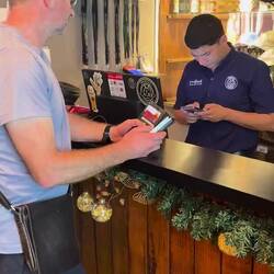 Pēc brokastīm notiek mans dienas galvenais notikums – maksāšana ar Bitkoiniem par viesnīcu. Izrādās, šādus maksājumus pieņem pats īpašnieks ar savu mobilo aplikāciju. Darbinieces viņu jau bija sagatavojušas darījumam, saimnieks ierodas priecīgs un ziņkārīgs. Viņš ir ļoti runīgs, liels Bitkoinu fans un ari saviļņots par šo notikumu, jo, liekas, ka esmu pirmais Bitkoinos maksājošais Eiropas klients. Darījuma satraukumā aizmirsu saimnieka vārdu, tomēr paspēju viņu nofotografēt pie restorāna durvīm ar Bitcoin uzlīmi (sk. pievienoto foto).