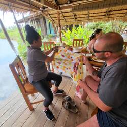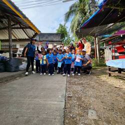 ensuite nous avons vus le village flottant de pêcheurs pour accoster sur l'île où nous avons été accueilli par les écoliers locaux 😍🥰