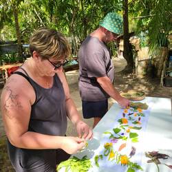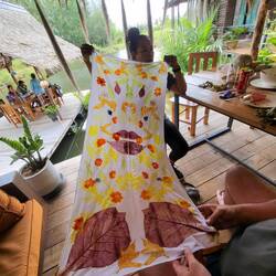 ensuite 😄😄 visite de l'île avec la ferme aux abeilles puis nous avons fait de la peinture sur tissu🤣🤣 juju a la fibre artistique mdr mais cependant se fut très intéressant