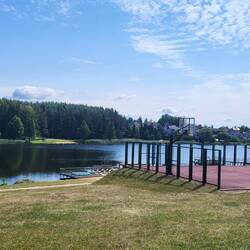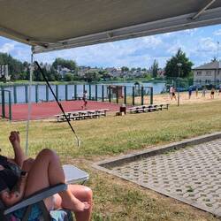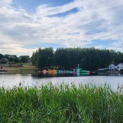 Abfahrt...zum Wake Park nach Akuštupénai. Wouw, hier sind am kommenden Wochenende Wettkämpfe und es wird schon langsam darauf hingearbeitet. Alles ziemlich wuselig. Wir frühstücken und fahrenLue lisÀÀ