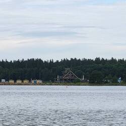Tschau Võsu...wir ziehen weiter. Unterwegs kommen wir an eine kleine Schleuse mit Badestelle in Kaunissare vorbei. Nach einer kurzen Rast geht's weiter. Links und rechts schicke Gebäude, hier haltenBaca lagi