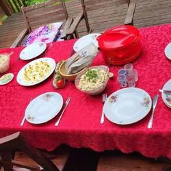 Heute fängt der Tag ein bisschen später an 😎😁. Gemeinsames Frühstück draußen auf der Terrasse. Hmm, irgendwie ist der Hunger noch nicht so groß nach dem gestrigen Festschmaus...😋 leckerBaca lagi